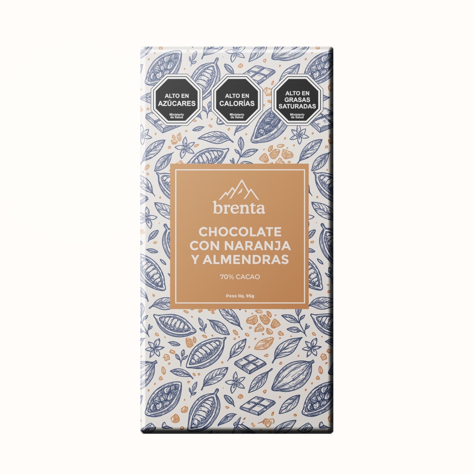 BRENTA Chocolate con Naranja y Almendras 70% Cacao – 95 g
